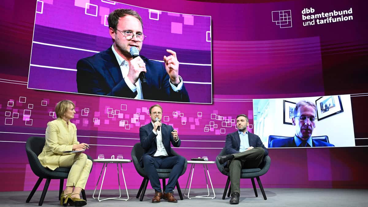 Die Bundestagsabgeordneten Konstantin Kuhle (FDP) und Marcel Emmerich (Grüne) versprachen beim traditionellen beamtenpolitischen Fachgespräch auf der dbb Jahrestagung am 8. Januar 2024, dass die Bundesregierung noch in diesem Jahr ein Besoldungsgesetz verabschieden wird, um entsprechende Vorgabe des Bundesverfassungsgerichts umzusetzen. Eine entsprechende Regelung fordert der dbb schon seit langer Zeit. Alle Bundesländer haben bereits Maßnahmen ergriffen, nur auf Bundesebene fehlt eine Regelung. „Das bekommen wir dieses Jahr ins Bundesgesetzblatt“, sagte Kuhle dazu. Die Politik sei zur Umsetzung verpflichtet, diese sei längst überfällig. „Bevor es wieder kalt wird“, ergänzte Emmerich.